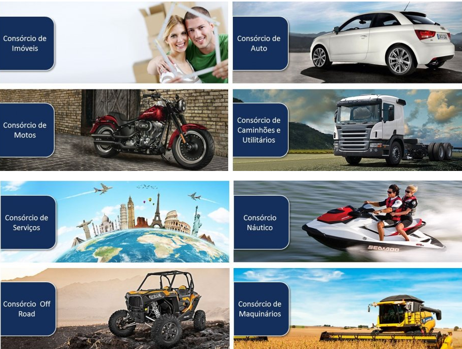 O que é Consórcio Consórcio é a reunião de pessoas naturais e jurídicas em grupo, com prazo de duração e número de cotas previamente determinados, promovida pela administradora de consórcio, com a finalidade de propiciar a seus integrantes, de forma imparcial e justa a aquisição de Bens Móvel, Imóvel ou Serviços, por meio de autofinanciamento. O que é possível comprar pelo consórcio? Pelo sistema de consórcio é possível programar a compra de qualquer bem de fabricação nacional ou importado, ou ainda serviços. É possível comprar: Veículos automotores, Imóveis, Embarcações, Aeronaves, Equipamento e Maquinários , Instrumentos musicais, Eletro, Serviços nas áreas de saúde, educação, turismo, etc.