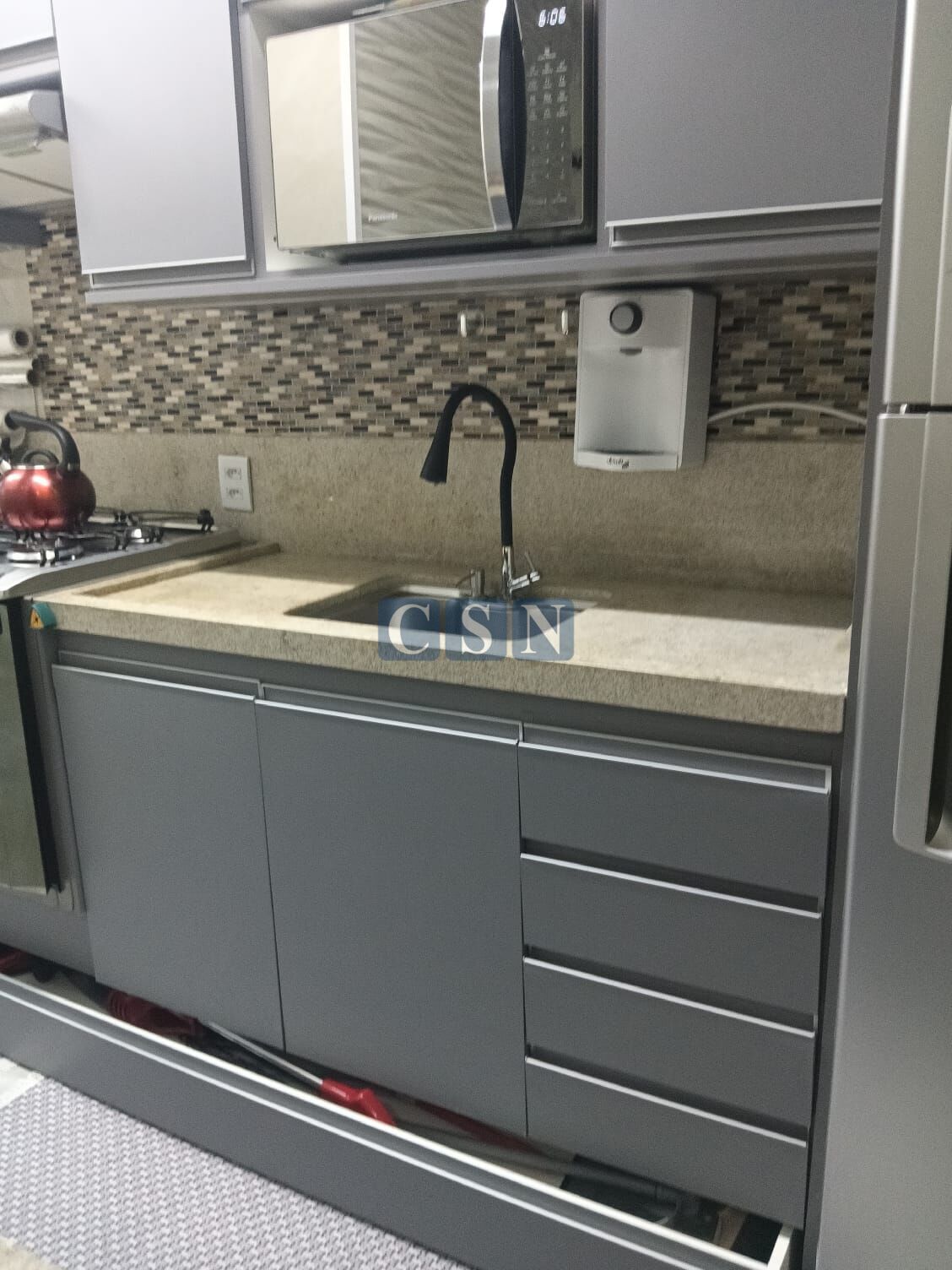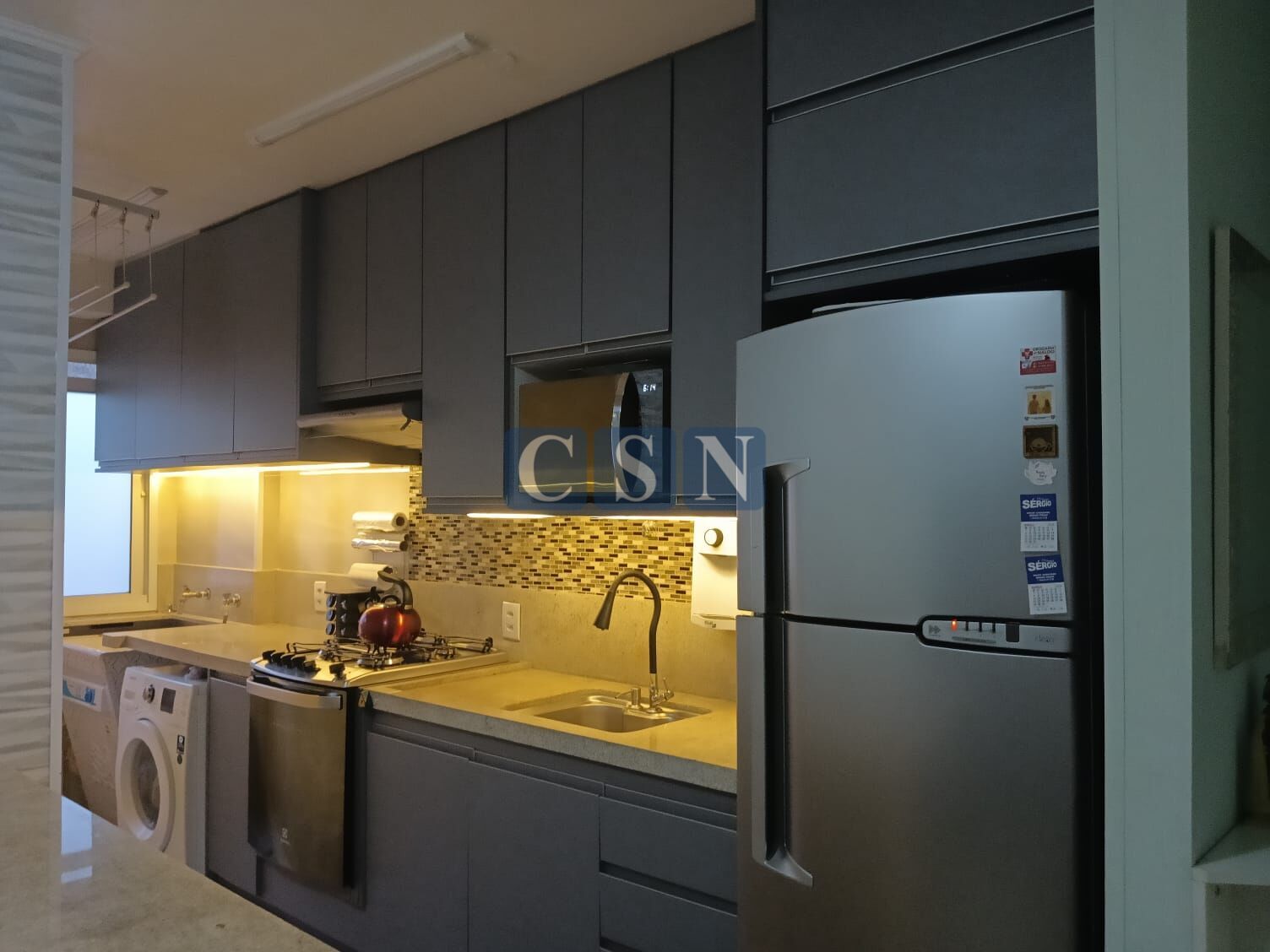*Cozinha funcional com armários embutidos;
