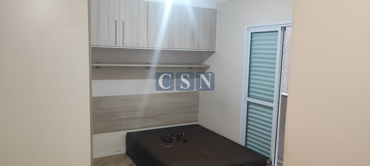 Suíte e cozinha com móveis planejados.