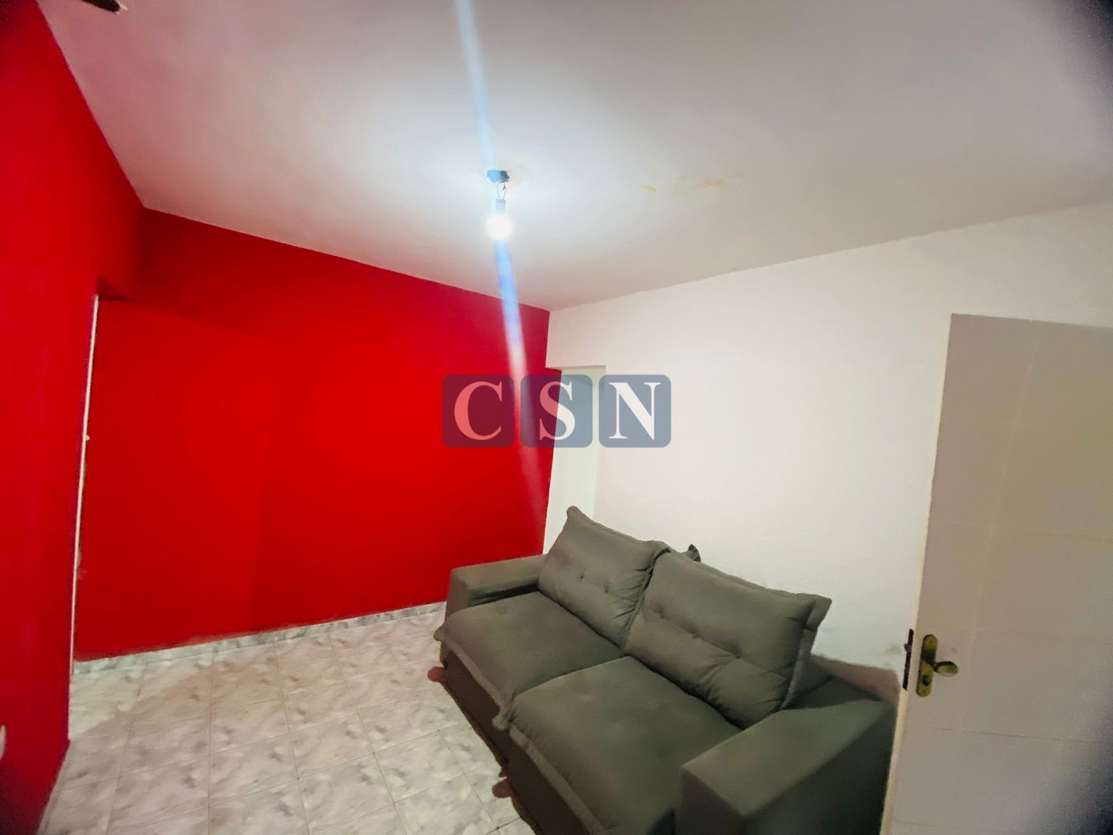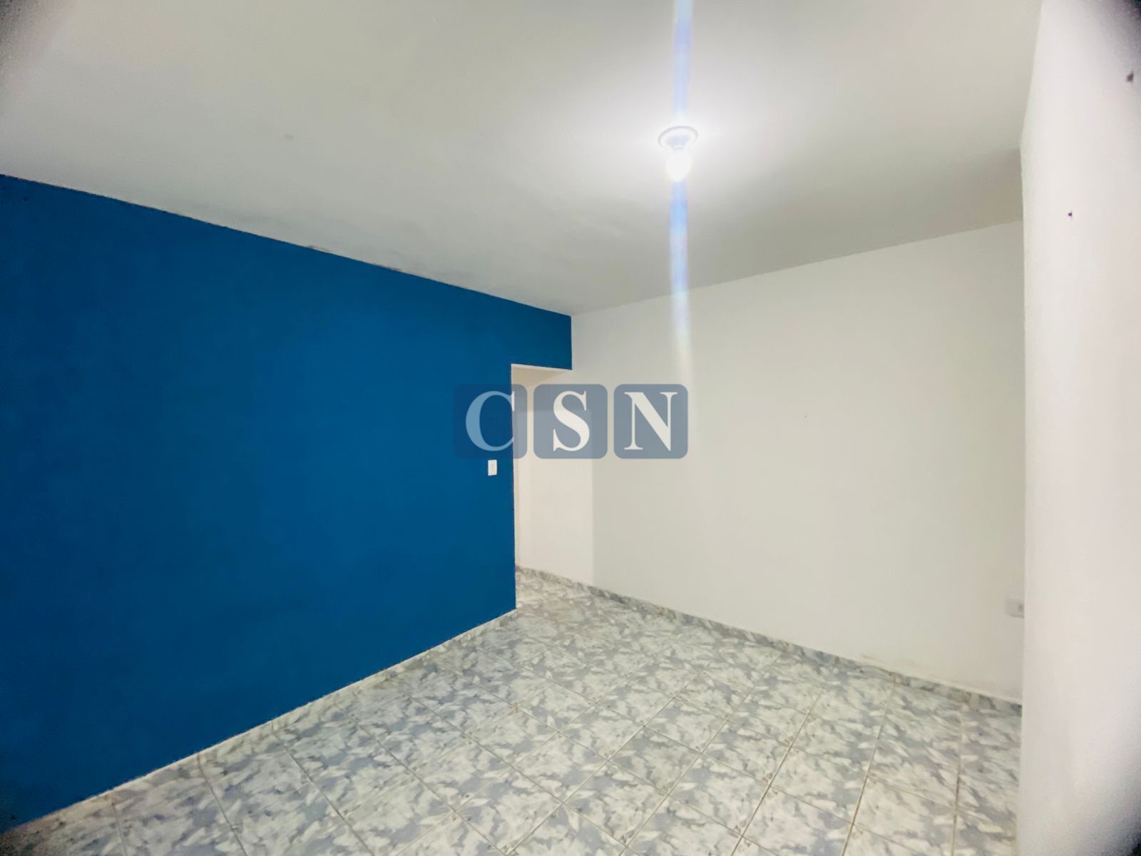 Casa térrea: 1 quarto, sala, cozinha, 1 banheiro, 1 área de serviço e com garagem (três cômodos).