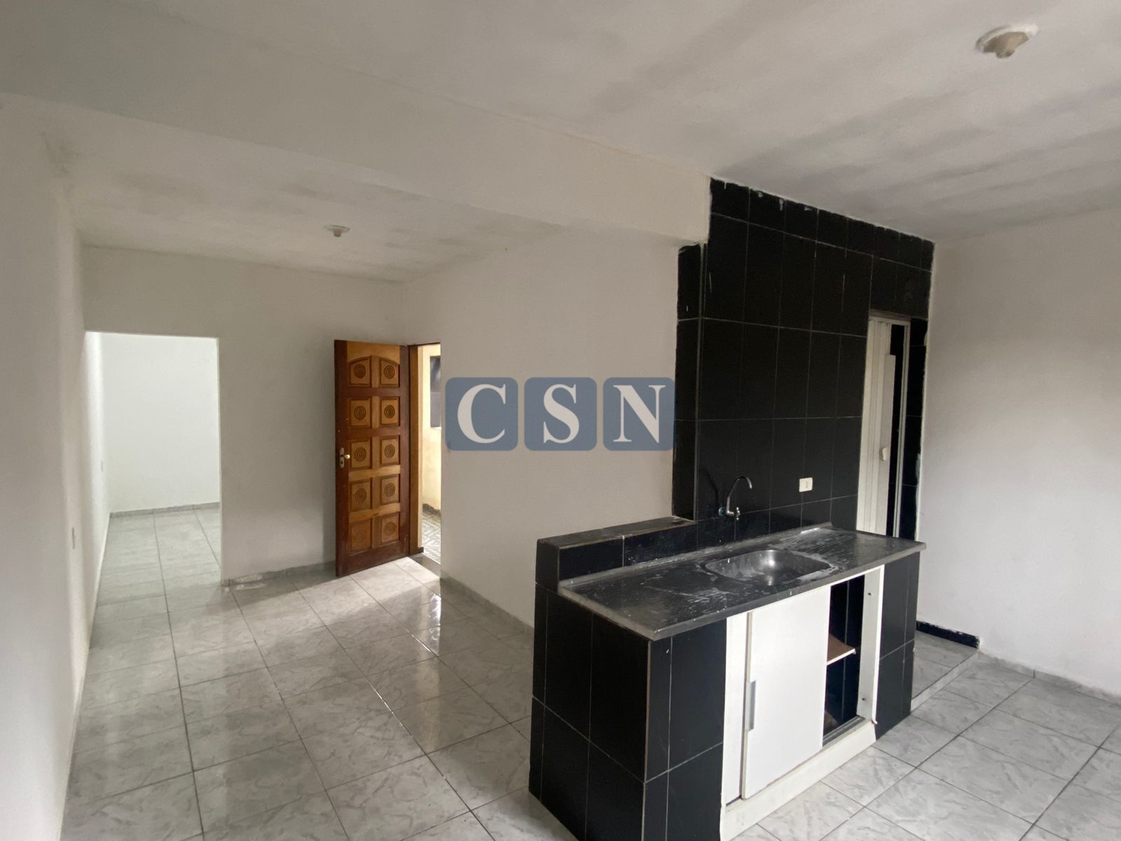 Cada casa com 1 quarto, 1 sala com cozinha americana, 1 banheiro e um corredor